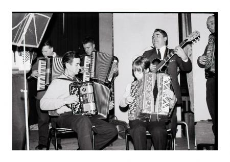 Joel Sundström med dotter Greta Sundström från Iskmo-Jungsund spelar dragspel. Se årsbok 1971.