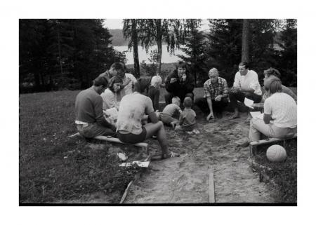 Grupparbete i sandlådan. Se årsbok 1970. Lisbeth Saxberg 2 fr v