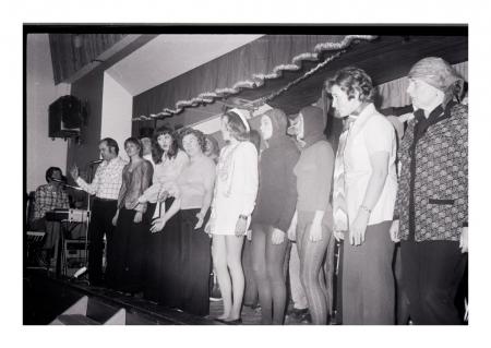 Maja Krook (andra från höger), Anni Nyström (sjätte från höger), Birger Krook (stående längst till vänster) Se årsbok 1975
