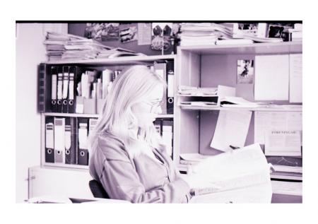 Kvinna bläddrar i papper