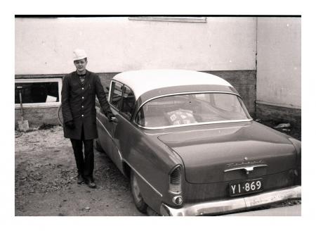 man med 50-tals bil