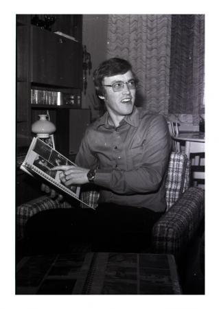 man med fotoalbum