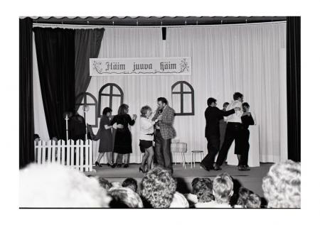 Anita Nygård, Christine Rosenback, Ralf Smith, Bertel Ruths, Krister Holm i revyn ”Häim juuva häim”