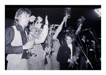 Personer med blommor på scen
