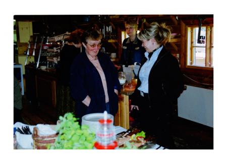 Katarina Dahlgren (Katarina Rosenback) i bakgrunden, Camilla Pihlgren till höger i svart och vitt ÖP 5/2004