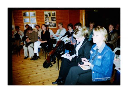 Katarina Dahlgren (f. Katarina Rosenback) sitter närmast kameran, och Camilla Pihlgren sitter bredvid och skriver ÖP 5/2004