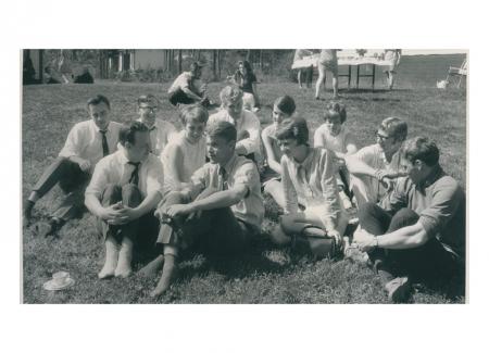 sittande samling folk i gräset