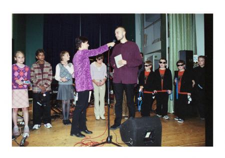 Josefine Brandt från Övermark, Nilla Hansson med mikrofon, Anders Grönroos, André Linman, Henrik Kurkiala, Calle Fahllund ÖP 9/2001