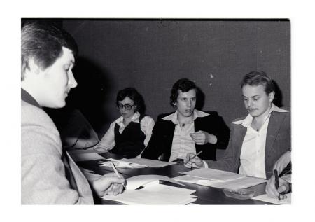 Karl-Johan Finne t.v. valdes till SÖU:s viceordförande, på andra sidan bordet från vänster Lilian Granlund, Lars-Erik Backman, Henry Kallvik.