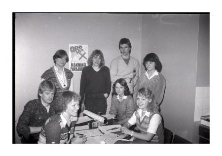 fr.v. Stig Göran Forsman, Kristina Eränen, Siv Gripström, Birgitta Björkman, Peter Hällbacka från Pörtom längst bak, Lisen Sandås, Annelie Ahlqvist, Ulla-Britt Kaustinen från Vörå t.h.