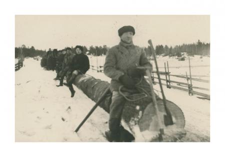 Utkörning av stock för Rökiö biblioteksförenings hus