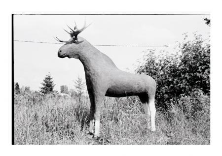 Gunnar Hedlunds utomhusskulpturer som han har gjort vid sitt hus.