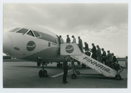 Kanslichef Ulf Johansson övervakar att alla kommer med på planet