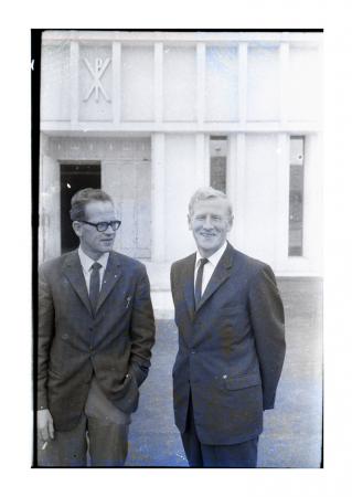 Amerikaresa? två män framför kyrka