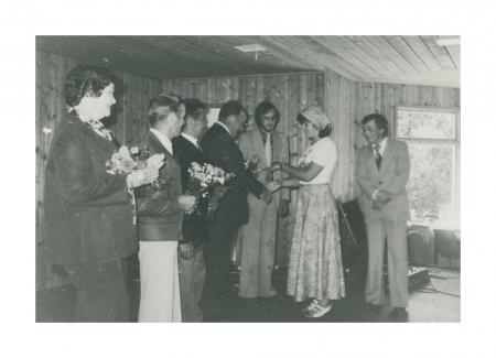 Elvi Knuts, Viktor Liljeqvist, Jörgen Byholm, Markus Westermark mottar hedersmärket Jan-Erik Frostdahl, Eivor Eklund-Back, Hans Ingvesgård Se årsbok 1975