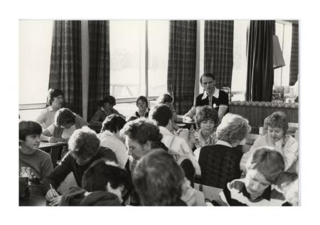 Fred Lindgren danslärare vid disken Se årsbok 1982