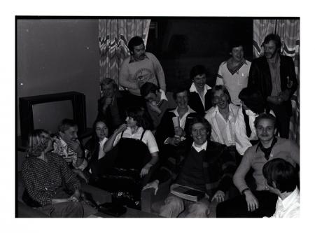 SÖU:s delegation håller gruppmöte Bror Jacobson, Bengt Lybäck, Ulf Johansson, Leif Rex