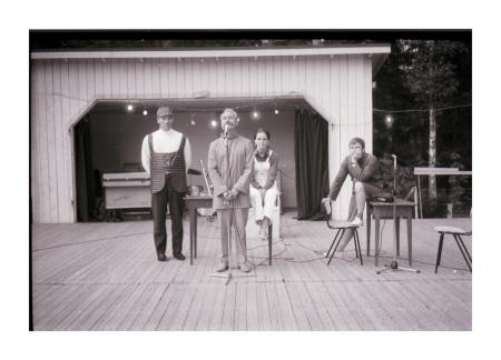 Loge 66 från Borgå framför sketch ur revy, Picken Stjernberg, Einar Karlsson, Monica Lökfors, Zacke Johansson,