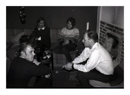 Grupp vid öppen spis