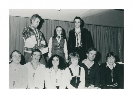 Överst vinnarna från Wasa UF Skatila Kaj-Erik Pått, Ann-Britt Edberg, Jan-Ove Ingo, nere t.v. trean Molpe UF Johnny Forsman, Henry Backlund, Clary Backgren, t.h. tvåan Petalax UF Britt-Marie Enholm, Bernt Björkholm, Jan-Erik Strandberg