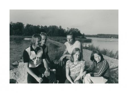 Christer Sjöblom, Göran Sjöblom, Lars Heinonen, Katarine Svanbäck (f. Heinonen). Ann-Britt Borgmästars (f. Eriksson). UF Svanen, Munsala Se årsbok 1976
