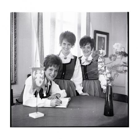 Uppträdde på SÖU:s sommarsamling 1968. Här skriver de namnen i Tottesunds gästbok. Se årsbok 1968.