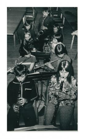 Håkan Mattljus på saxofon längst bak, Yvonne Ede (Yvonne Stenmark) längst fram till höger, Mary Nystrand på althorn