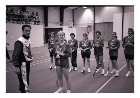 Damsegrarna Överesse UF Nina Rönnbacka, Ann-Christine Enqvist, Camilla Joensuu, Lena Enqvist (f. Borgmästars), Yvonne Gunell, Carina Vikström, Camilla Ahlvik (f. Smeds), Carina Rönnbacka med pokalen