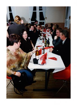 Närmast kameran Petra Sundholm. Ryggen mot kameran Maria Norrgård, med glasögon Mats Ekblom, näste man till höger Steven Frostdahl. Andre man på bordets högra sida Niklas Sandnabba. ÖP 10/2005
