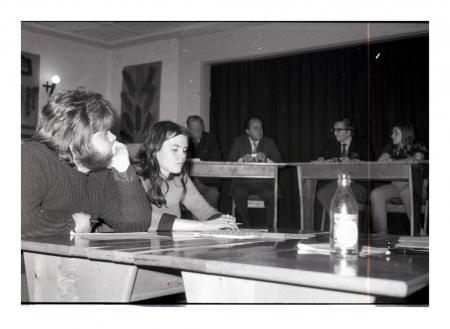 Debatt om nya ungdomslagen. Fr.v Stig-Olof Nyberg, Birgitta Forsman, bakom Ulf Malm, Rudolf Olsson, Paul Lindell och Lisbeth Saxberg. Se årsbok 1972.
