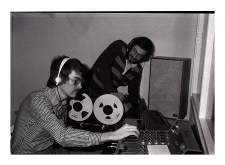 Björn Schauman, David Thöllx (från Reflexbandet) vid skivinspelning Se årsbok 1976