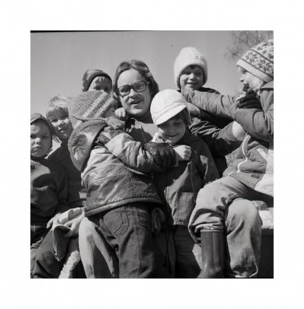Heikki Suonio, barnträdgårdslärare i Jakobstad omgiven av Sami Nummensalo, Annika Koreakoski, Satu Moilanen, Sussi Nyström, Sussie Pettersson
