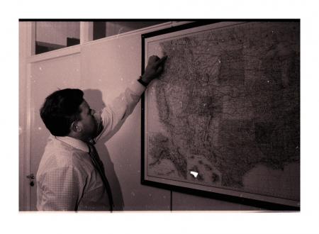 Man vid USA-karta