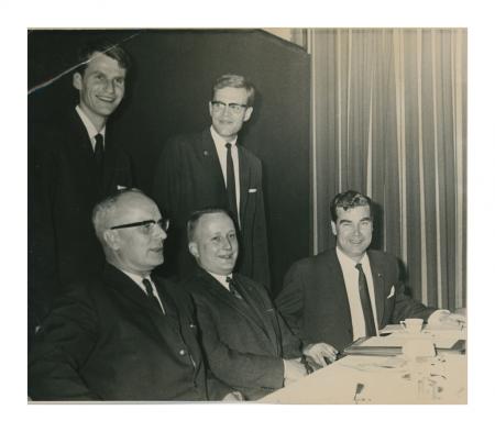 Olav Storgård, Jan-Erik Gustafsson, Grels Teir, Allan Blom, Gunnar Rosén. Planerna på en stor österbottnisk u-landsaktion presenterades för pressen vid ett diskussionsmöte i Jakobstad.