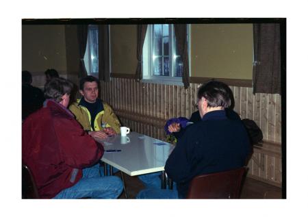 Pörtomlag (spelare med ryggen mot kameran) Göran Udd (med ansiktet mot kameran), Leif Ingman (mittemot)