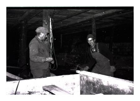 Mannen till vänster är Verner Hofman. Renovering av discot i Korsnäs.