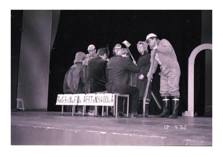 ”Regeringens aftonskola” Pörtom UF, Stående fr v Jan-Erik Högback, Margareta Vidgren, Patricia Vidgren, Sören Storbäck.