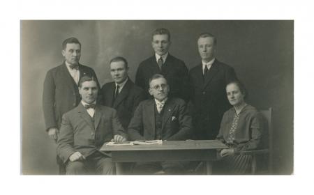 Stående Johan Granberg, Erik Hägglund, Johan-Erik Enges, Edvin Holms. Sittande Vilhelm Björklund, Johan Alfred Påhls, Hilma Hildén