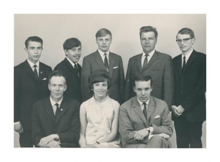 Ansvariga för de praktiska förberedelserna inför Nordivalen. Kaj Granlund, Sven Söderman, Roger Bergström, Kurt Lillandt, Caj-Ole Åstrand från Övermark, Ture Nyman, Karin Norrgård (Karin Snickars), Per-Ole Lundell. Se årsbok 1967.