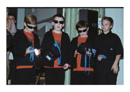 Trion Ålivboys från Vasa, André Linman, Henrik Kurkiala, Calle Fahllund (senare Sturm und Drang) sjöng Mr Dino som läraren Annika Rehn skrivit texten till. ÖP 9/2001