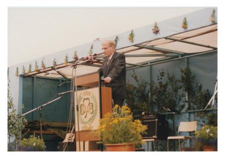 Sundom UF 100 år Talare framför en scen
