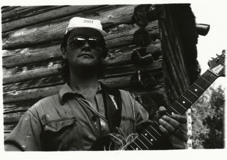 Nils-Erik Nisse Tuomela före han kliver upp på scenen i bandet Hugo & The BeeGees Se årsbok 1983