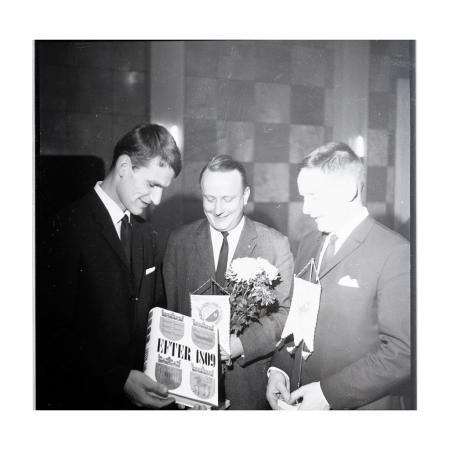 Olav Storgård avtackar Allan Blom och Håkan Malm. Se årsbok 1968.