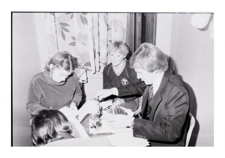 Resolutionsutskottet producerade många uttalanden som mötet sedan godkände Leif Rex t.h. Se årsbok 1979