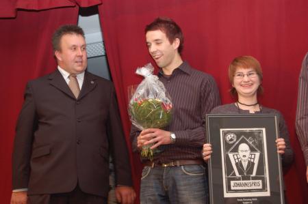 Jen Juthström delar ut Johannespriset som årets förening åt Sami Holtti och Malin Westerlund, Terjärv UF ÖP 9/2006