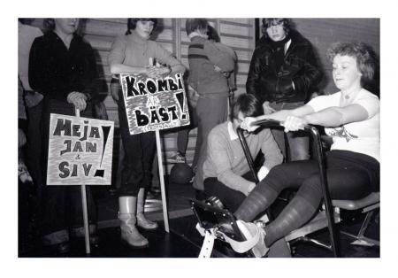 Kronobybor hejar på sina representanter i finalen, Siv Gripström i roddapparaten, Rolf Storgård kontrollräknar Se årsbok 1978