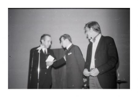 tre män på scen vid mikrofon