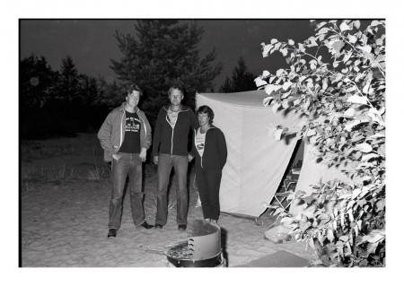 Tre personer vid tält