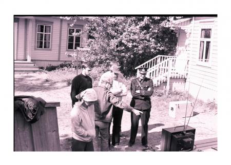Ralf Långbacka i keps, Trygve Erikson i polis uniform Se årsbok 1976