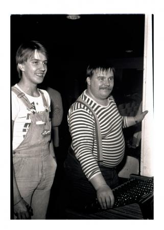 två män vid ljudmixer